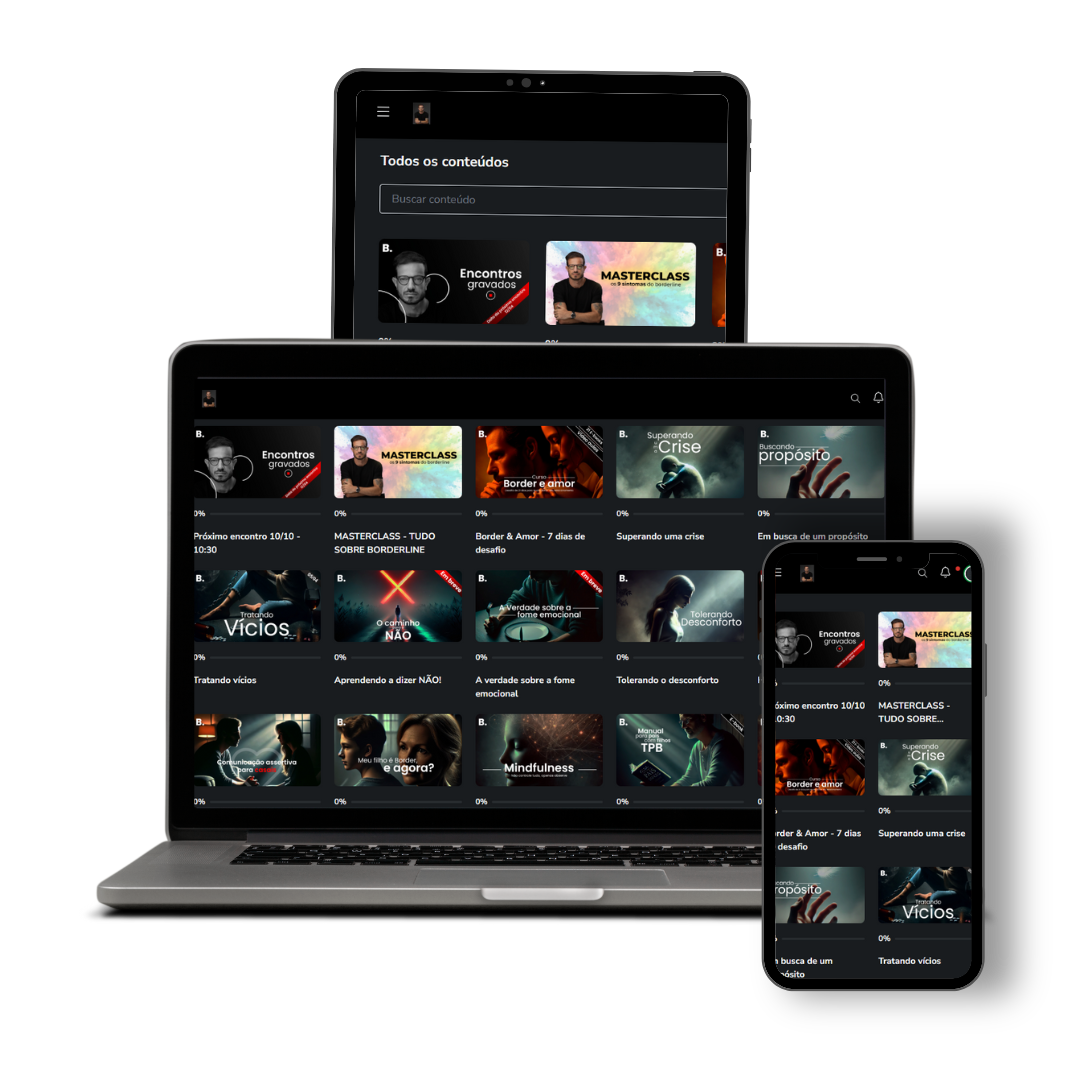 A Comunidade B. é um espaço seguro e acolhedor para pessoas que convivem com o Transtorno de Personalidade Borderline (TPB). Oferecemos acesso a e-books, cursos, desafios práticos e encontros online para compartilhar experiências e aprender estratégias de regulação emocional.